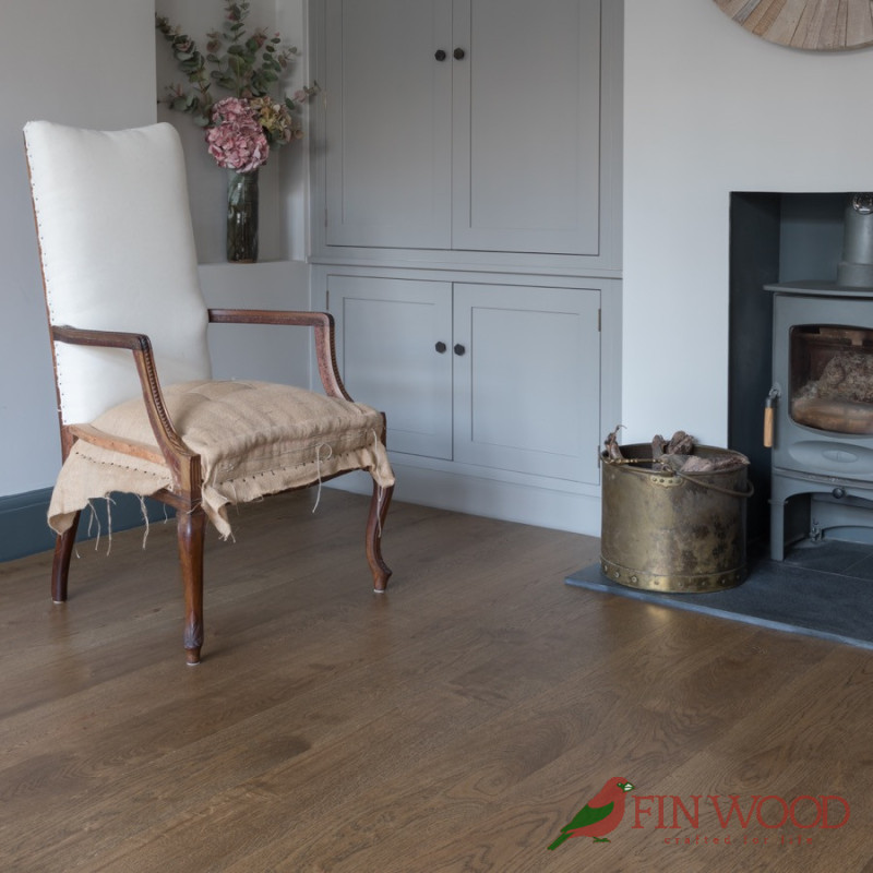 Our Amber lacquered finish is a soft mid-brown colour with the natural undertones of the oak coming through, helping to achieve the look of a reclaimed floor but with modern manufacturing techniques.